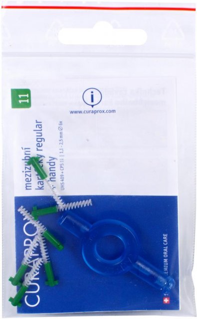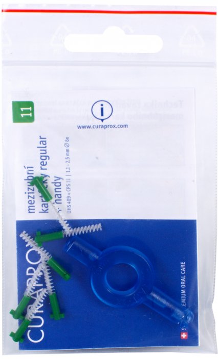 Kartáčky CPS "regular" mají pevnější vlákna a silnější drátěné jádro než kartáčky CPS "prime", díky tomu si udržují tvar i při velmi častém používání. Proto se řada "regular" doporučuje především pro sekundární prevenci při otevřených mezizubních prostorech, zvláště u výplní, korunek, můstků a obzvláště úporném plaku. Mezizubní kartáčky CURAPROX CPS lze libovolně kombinovat s jakýmkoli držákem UHS díky patentovanému "click" systému. Balení (sáček) obsahuje 6ks mezizubních kartáčků, 1ks držáku handy.