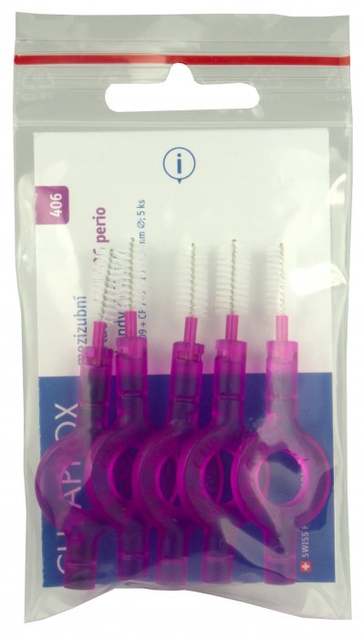 Mezizubní kartáček je určený k dokonalému vyčištění mezizubních prostor. Řada "perio" navazuje na řadu "prime",je vhodná pro čištění větších mezizubních prostor. Balení obsahuje 5 ks kartáčků a 5 ks přímého držáku. Sáček.