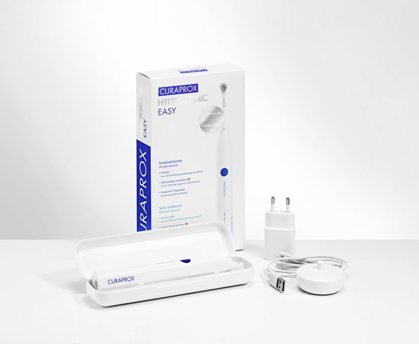 Hydrosonický kartáček Easy s inovativní hlavicí ve tvaru kapky je jednoduchý, ale účinný elektrický sonický kartáček pro péči o zuby a dásně. Spolehlivě zlepší a udrží celkové zdraví vaší dutiny ústní. Díky hydrodynamickému efektu částečně čistí i mezizubní prostory.