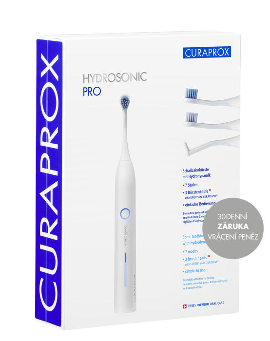 Hydrosonic PRO je výborný pro léčení a prevenci zubních kazů, zánětu dásní a paradentózy. Je obzvláště vhodný pro čištění zubů během ortodontické léčby i po jejím skončení. Díky hydrodynamickému efektu částečně čistí i mezizubní prostory. Švýcarská technologie čistících hlav kartáčků v té nejvyšší kvalitě.