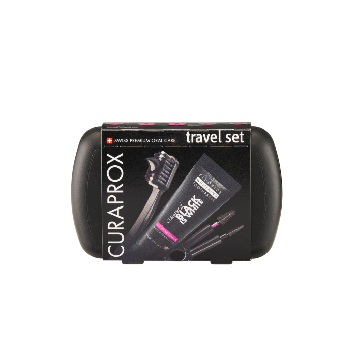 Oblíbenou cestovní sadu CURAPROX můžete mít nyní i v elegantní variantě Black is White. Ať už jedete na dovolenou, na výlet nebo jste v práci či na rodinné oslavě - všechny pomůcky pro zdravý úsměv máte vždy po ruce. Krásně se vejde do malé kabelky nebo do kapsy!