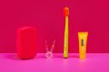 Travel set je k dispozici v šesti barevných kombinacích. Vybrat si můžete podle nálady nebo například podle své oblíbené příchuti bělicí zubní pasty BE YOU.