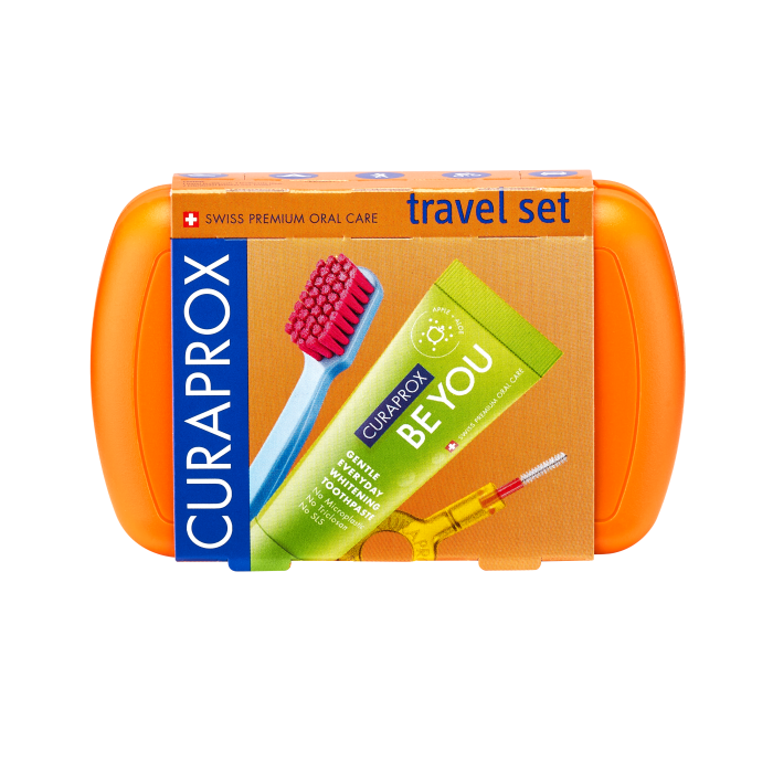 CURAPROX Travel set je nepostradatelným společníkem na cesty. Ať jste kdekoliv, vždy máte připravenou sadu základních pomůcek pro správnou péči o zuby a dásně. Díky praktické velikosti krabičky (pouze 9,5 cm x 6 cm) už nemusíte dělat kompromisy a můžete mít užitečné pomocníky dentální hygieny vždy při sobě, v příručním zavazadle nebo prostě v kapse.