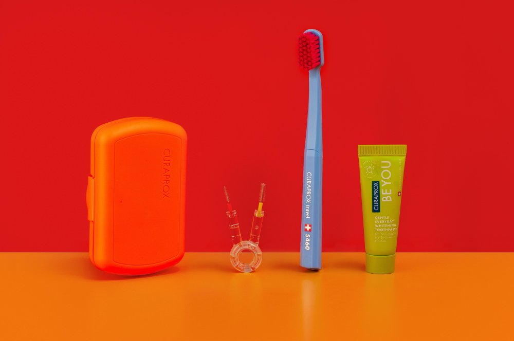CURAPROX Travel set je nepostradatelným společníkem na cesty. Ať jste kdekoliv, vždy máte připravenou sadu základních pomůcek pro správnou péči o zuby a dásně. Díky praktické velikosti krabičky (pouze 9,5 cm x 6 cm) už nemusíte dělat kompromisy a můžete mít užitečné pomocníky dentální hygieny vždy při sobě, v příručním zavazadle nebo prostě v kapse.
