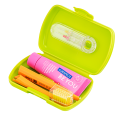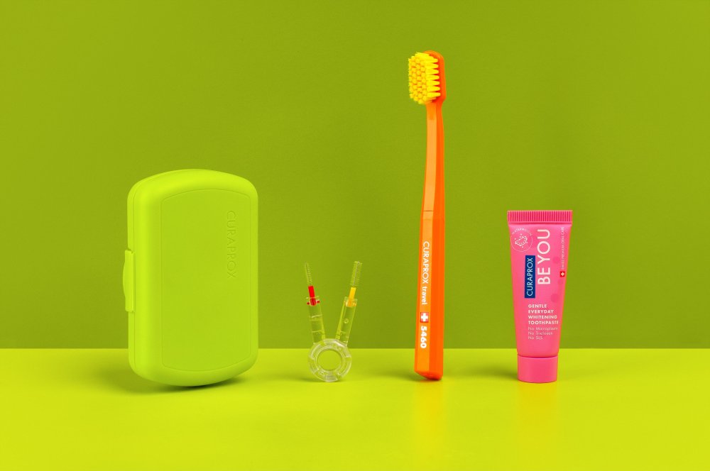 CURAPROX Travel set je nepostradatelným společníkem na cesty. Ať jste kdekoliv, vždy máte připravenou sadu základních pomůcek pro správnou péči o zuby a dásně. Díky praktické velikosti krabičky (pouze 9,5 cm x 6 cm) už nemusíte dělat kompromisy a můžete mít užitečné pomocníky dentální hygieny vždy při sobě, v příručním zavazadle nebo prostě v kapse.