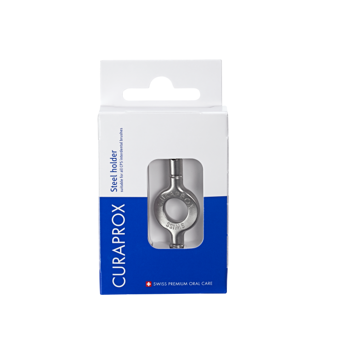 Kovový držák mezizubních kartáčků, stříbrný, click systém.