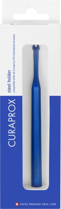 Ocelový držák mezizubních kartáčků, modrý, click systém.
